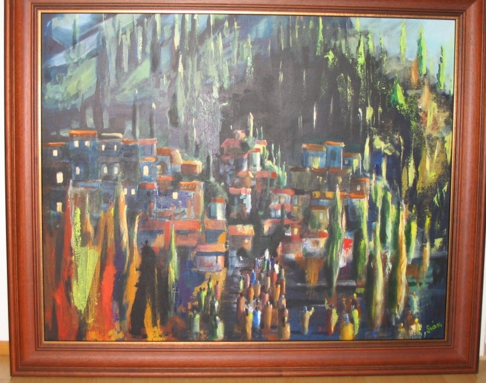 | Clown and Rider Oil on Carton 8"x 6" (20,5 cm x 15 cm) Unframed Painted in 2010 Nagykoru $200 | | Daybreak Acrylic on Canvas 32"x40" (80 cm x 100 cm) Framed Painted in 2004-2007 Pilisvorosvar $700 | | Quo Vadis Acrylic on Carton 36"x25" (90 cm x 63 cm) Framed Painted in 2010 Nagykoru $300 |